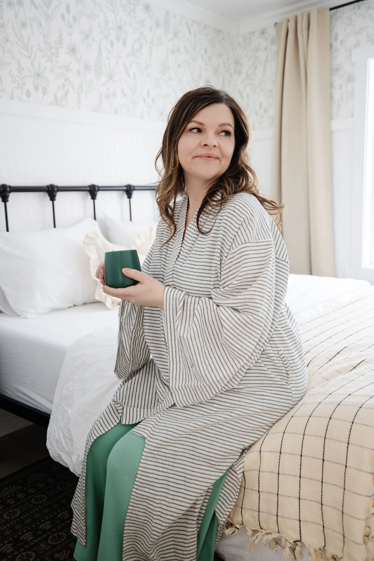 Lightweight Pinstripe Coverup with Batwing Sleeve - Short